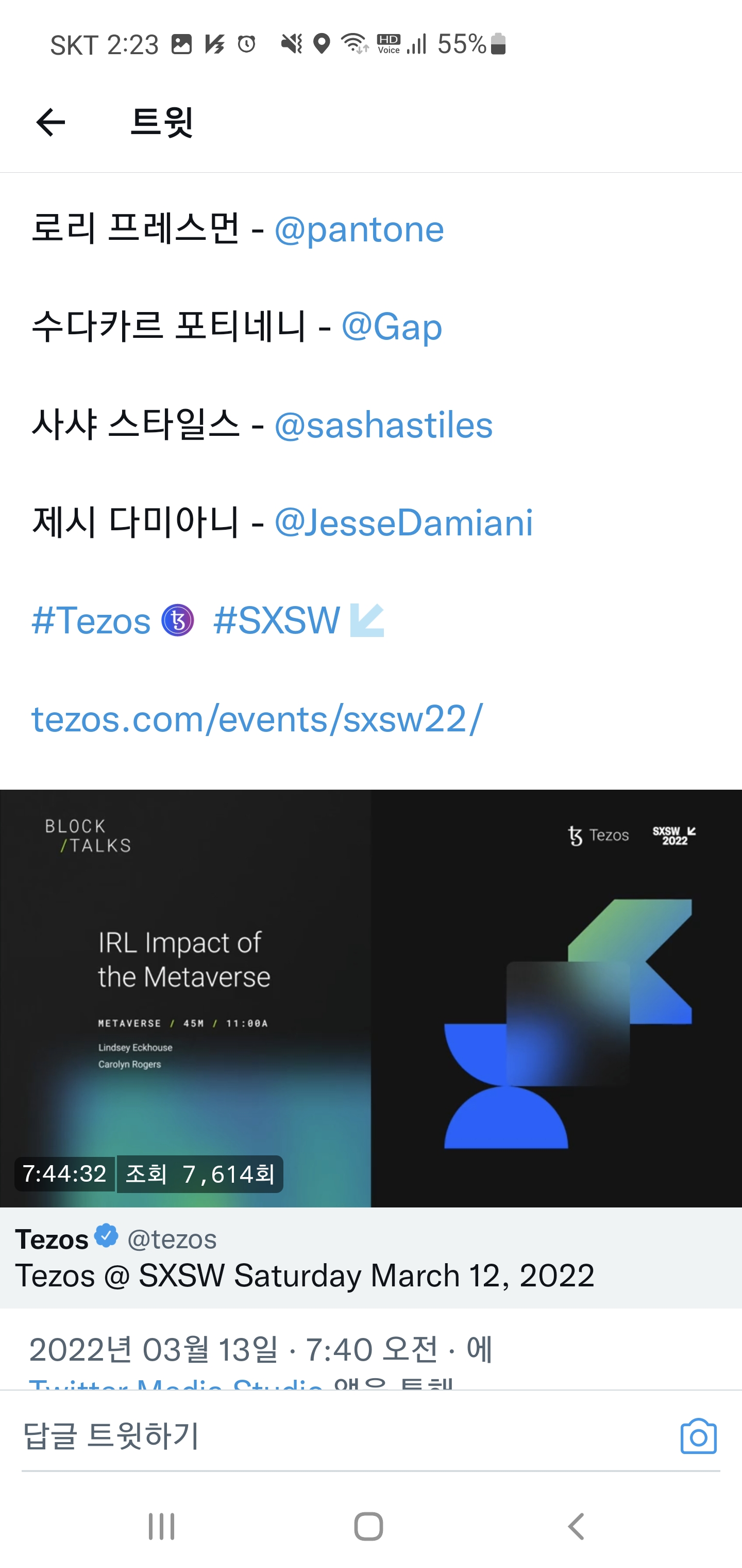 트윗을 통해 테조스(XTZ) 코인 호재 소식을 알렸습니다.